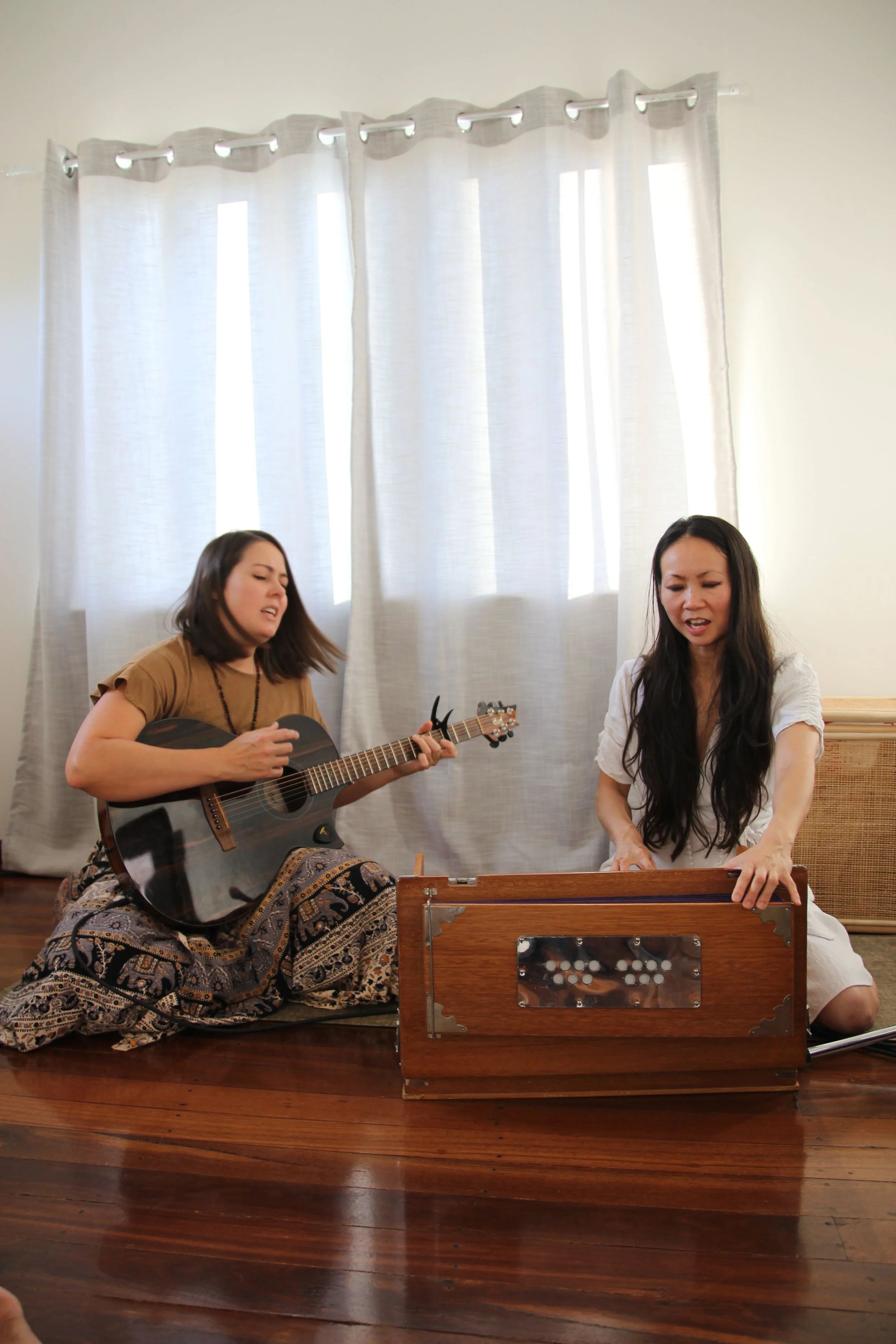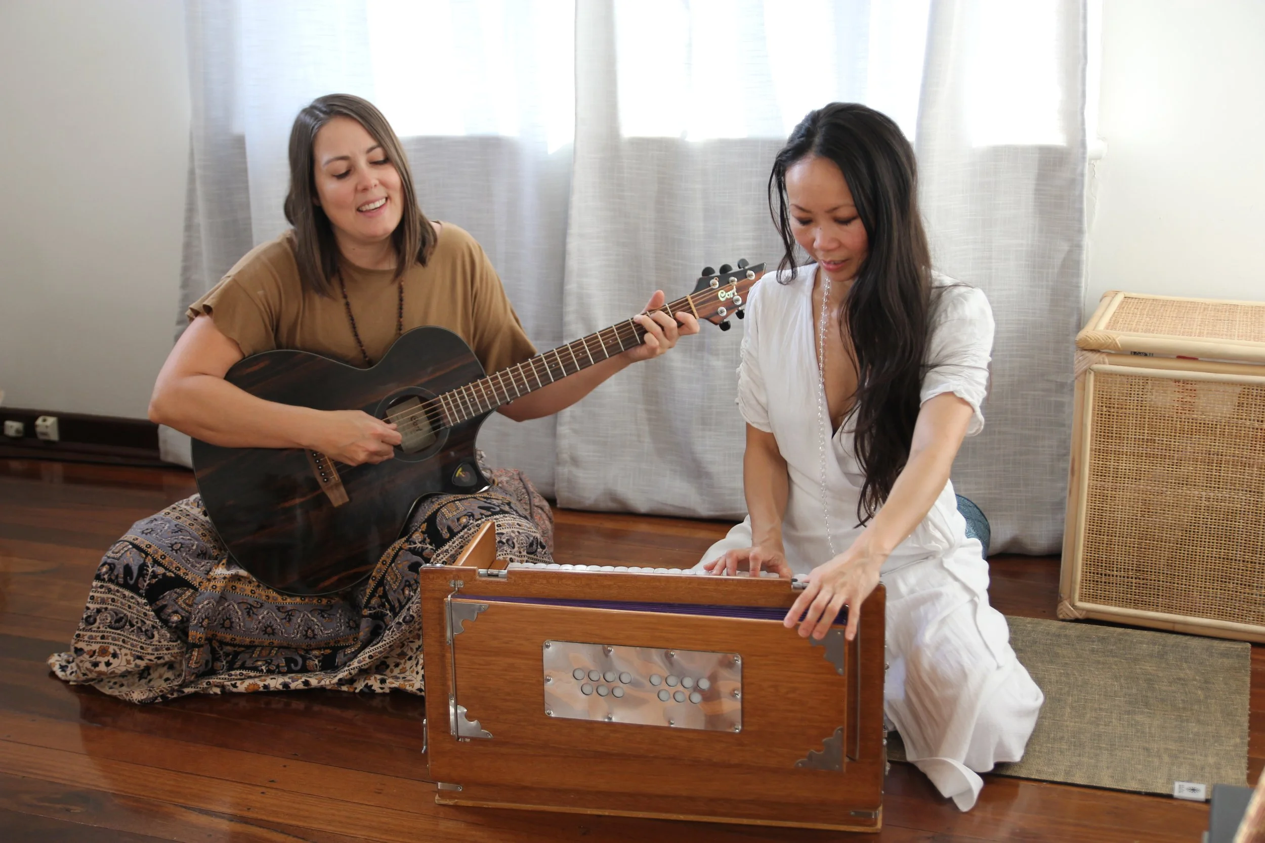 Kirtan is a potent devotional and spiritual practice with the intention of releasing and removing negative energy. The mantras sung are sacred and help connect us deeper to our Selves. When we sing from the heart, we slowly let go and everything else around fades - our surroundings, our thoughts...and our worries. Our sense of separation subsides and we feel a deeper connection to our soul. The beauty of the practice being done collectively is that we absorb into uplifting energy of the vibration of the music and those around us. When we experience this, we feel a sense of peace and harmony. We move from doing and thinking to simply being there, completely present in the moment...and we experience feelings of bliss and joy.